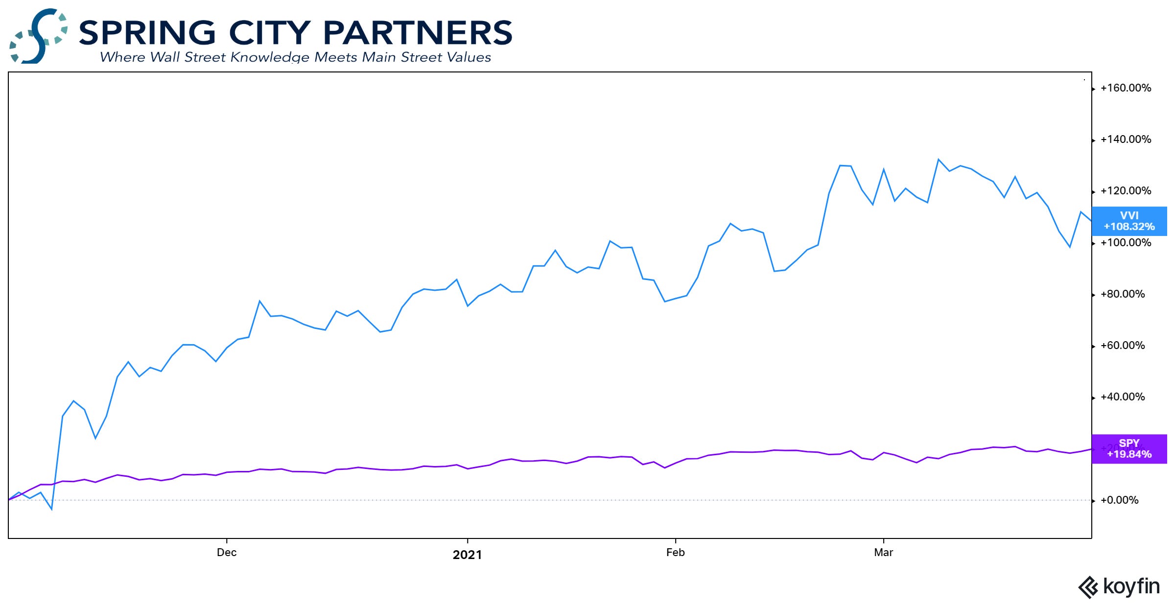 I’m not writing about this experience in an effort to brag about how much VVI has gone up. Unfortunately, it went down a lot first! Rather, I want to provide a window into a real life example of a position in the portfolio and how I managed it. Experiences like this give me confidence in my ability to navigate investments through periods of extreme volatility. Furthermore, it reinforces my need for partners who understand the risk and potential rewards with this strategy. It is a lot easier to have diamond hands when investments are going up. It is much more difficult to maintain that level of belief when something you own declines by 80% in the span of 7 weeks.